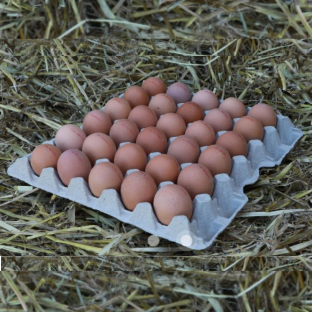 Onze eieren komen van de scharrelkippen van het pluimveebedrijs Lagerweij en voldoen aan het IKB keurmerk, dit betekent dat de weg die het ei aflegt van de kip tot de klant aan de strengste eisen voldoet. Daarnaast krijgen kippen van Lagerwei een eigengemaakte voersamenstelling met extra veel maïs en verantwoorde soja waardoor het ei nog lekkerder wordt!