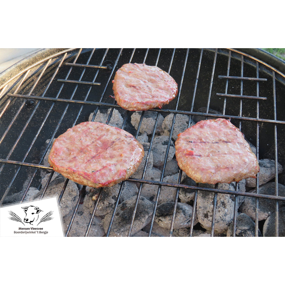 Dit rundvlees komt van onze eigen Belgisch wit-blauwe runderen, die kleinschalig worden gehouden op ons eigen land. Gedurende het voorjaar en de zomer lopen alle koeien en kalfjes vrij in de wei. 's Winters worden onze koeien gehuisvest in ruime strohokken en worden ze gevoerd met ruwvoer van eigen land. Bij ons weet je dus precies waar het vlees vandaan komt en ben je verzekerd van uitstekende kwaliteit en smaak.