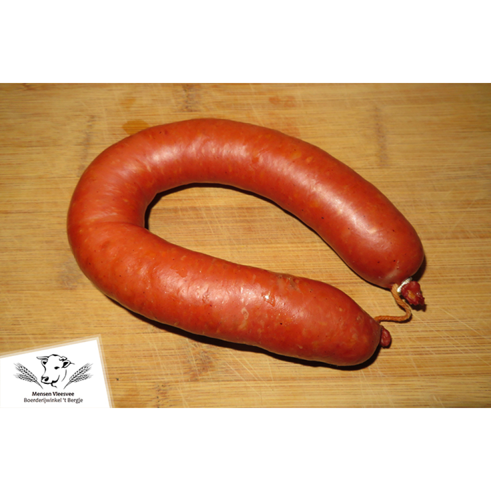 Proef de authentieke smaak van vakmanschap! Onze heerlijk ambachtelijke (runder)rookworst, met zorg bereid door de keurslager, staat garant voor puur genot. Perfect gekruid en traditioneel gerookt voor die onmiskenbare, rijke smaak.