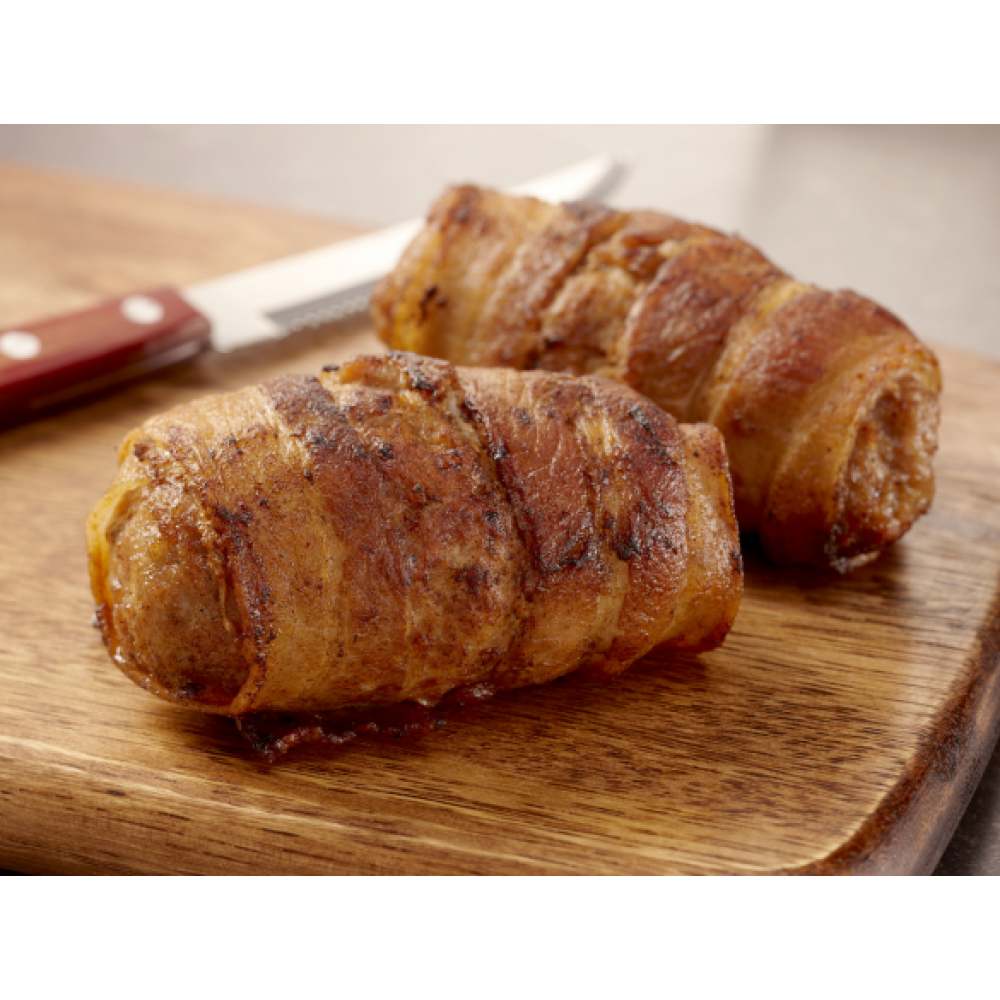 Een slavink is een rolletje varkensgehakt met daarom heen spek gewikkeld.